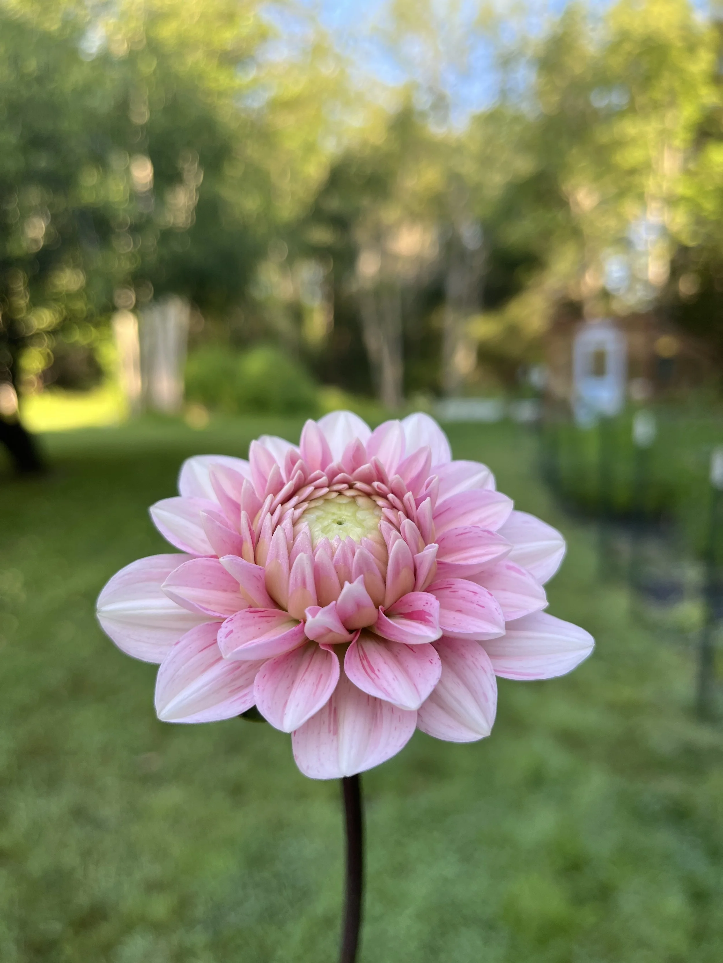 Strawberry Cream was probably that dahlia that took me most by surprise this season. I couldn’t believe the variation in colors and blooms this plant had to offer! Some blooms were a very light pink with only a dusting of the darker, strawberry pink color. Others would be almost completely raspberry, with just a few petals and little hints of lighter pink. (See photos for variation) Smaller to medium sized plants did not require staking, but still produced an abundance of perfect, dark colored stems. This is a super fun one to have and I am definitely going to be growing more of her next year!